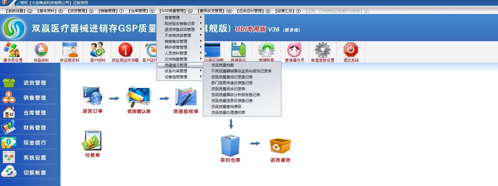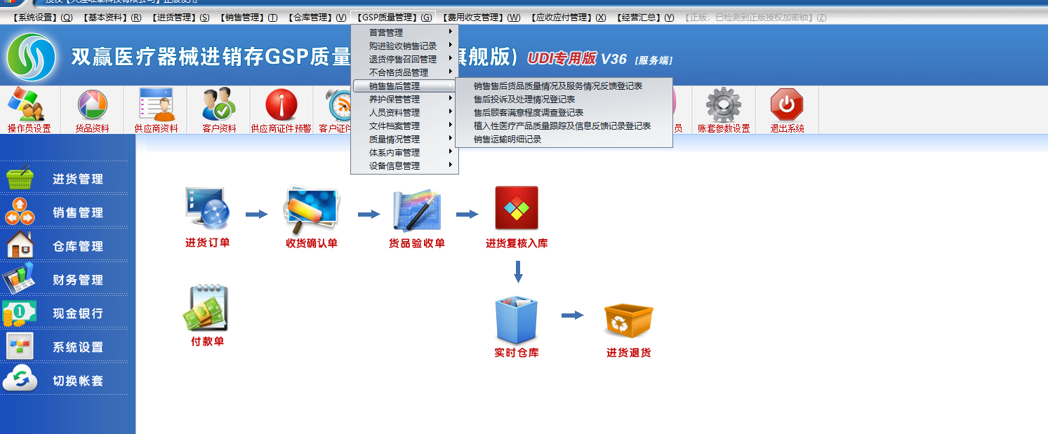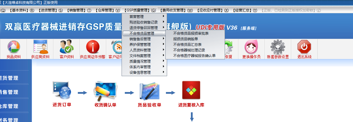 双赢三类医疗器械gsp软件有不合格品、不良反应监测这些环节吗?有的,如图示
