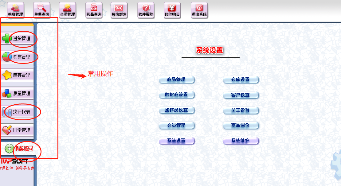 美萍门诊软件医药销售软件经常不知道从何入手?比如医药销售软件中,快速熟悉这几个地方的操作,可以上手更快。