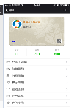 美萍软件电子会员卡是什么样?微信会员卡支持吗?如图示