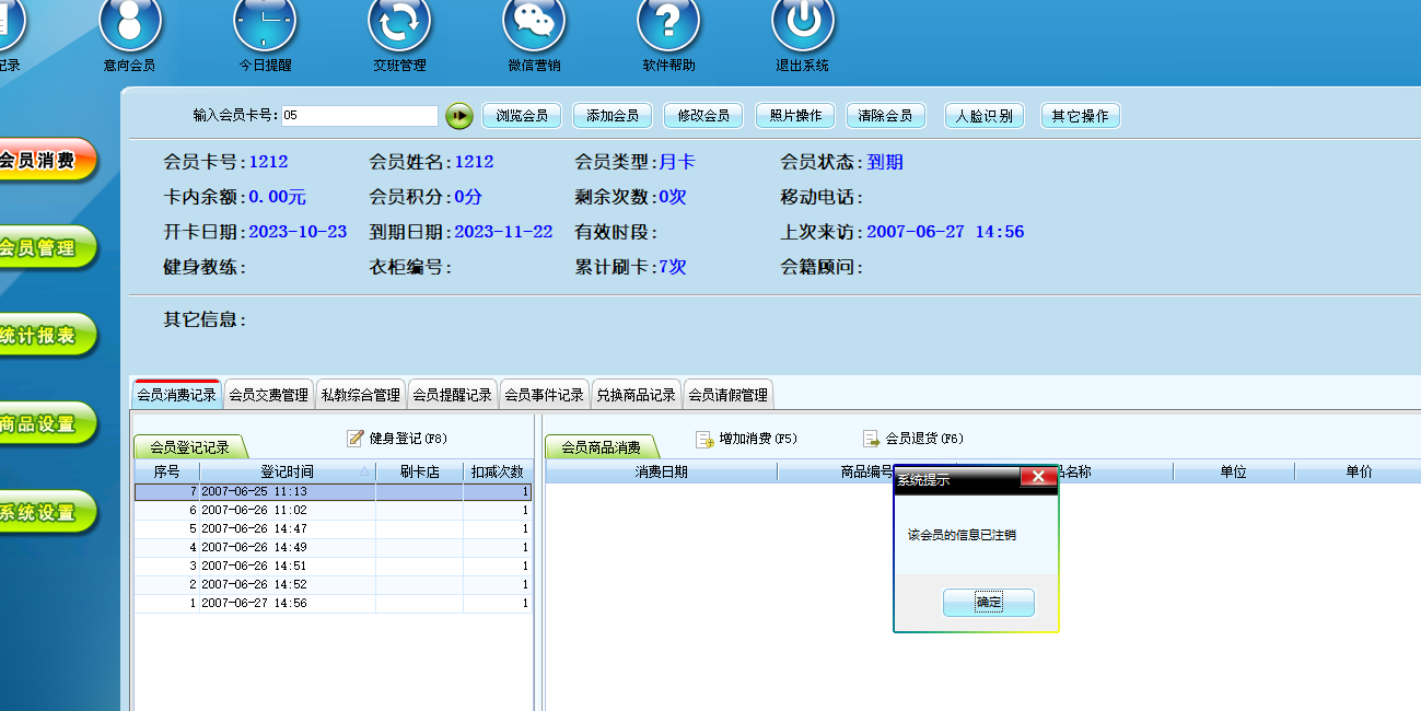 可以会员注销,注销后,该会员将不能再次在店内以会员身份消费了。如图示: