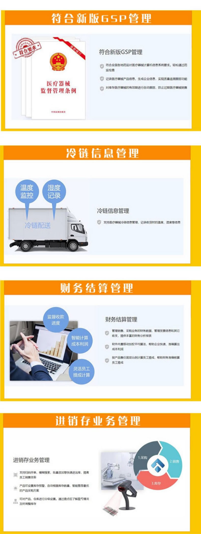 美萍医疗器械管理系统不仅符合药监局最新版要求,还具备冷链管理、手机查账等系列功能