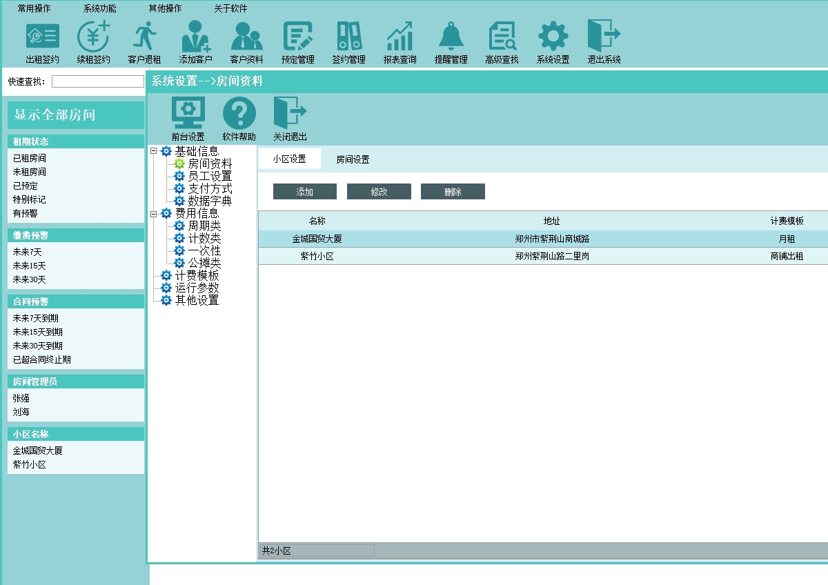 第十一:公寓出租软件可以管理各种基础数据信息,支持自定义添加各种基础数据以及变量设置。