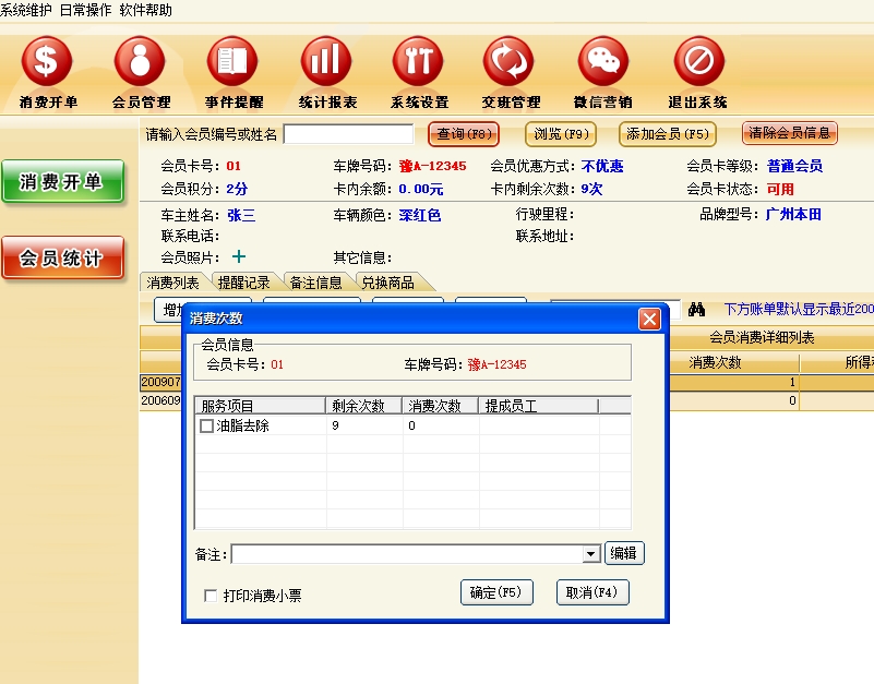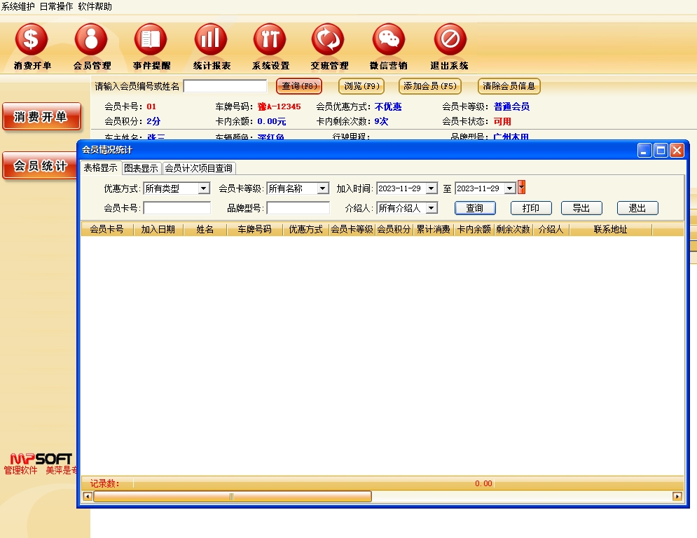 第一:汽车美容软件可以对会员消费情况进行管理,自动完成累计积分,消费打折等。