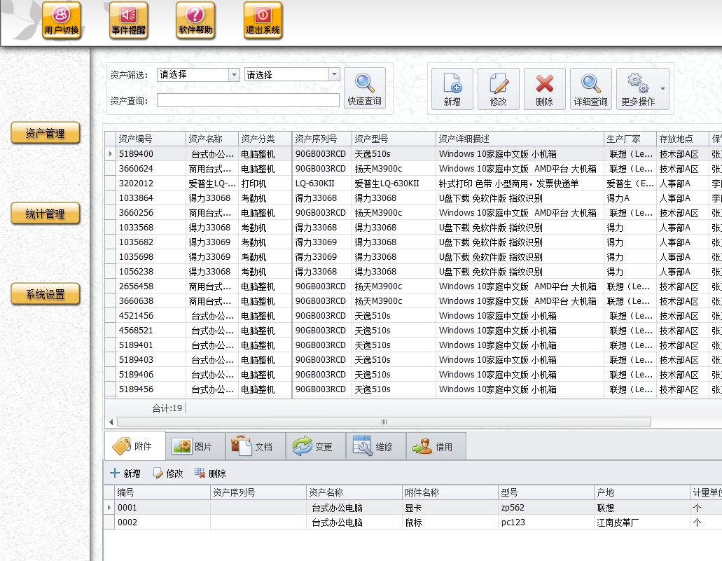 第七:固定资产软件独创关联数据模式,让所有查询都简单方便。