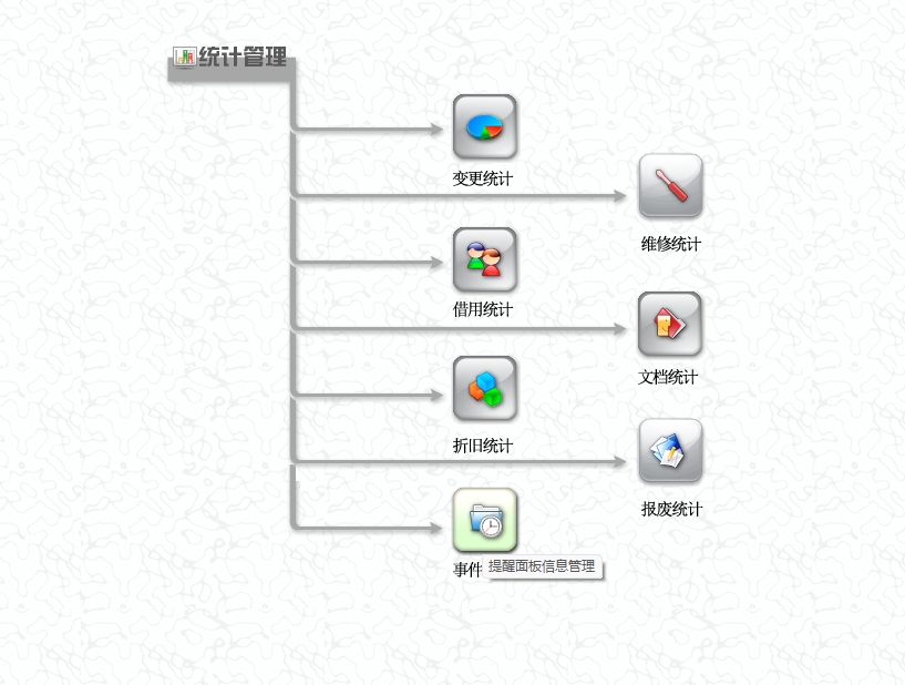 第五:固定资产软件统计报表丰富,可对资产的变更、维修、借用、文档情况进行统计。