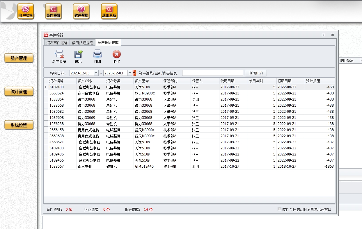 第十:固定资产软件支持设置与资产相关的不同条件下的提醒,支持资产借用归还提醒设置。