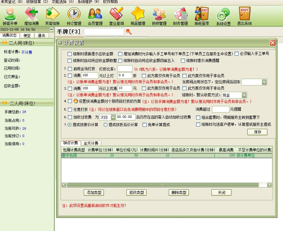 第一:足疗软件具有强大的计费功能,可为使用者提供多种计费方案,满足不同项目实现不同的收费方案。