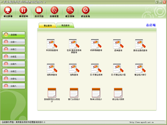 第十四:足疗软件支持设置多个分店,领导层只需点击相应分店,即可查询对应分店的实时营业情况。