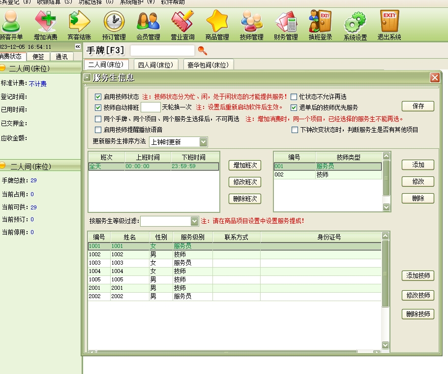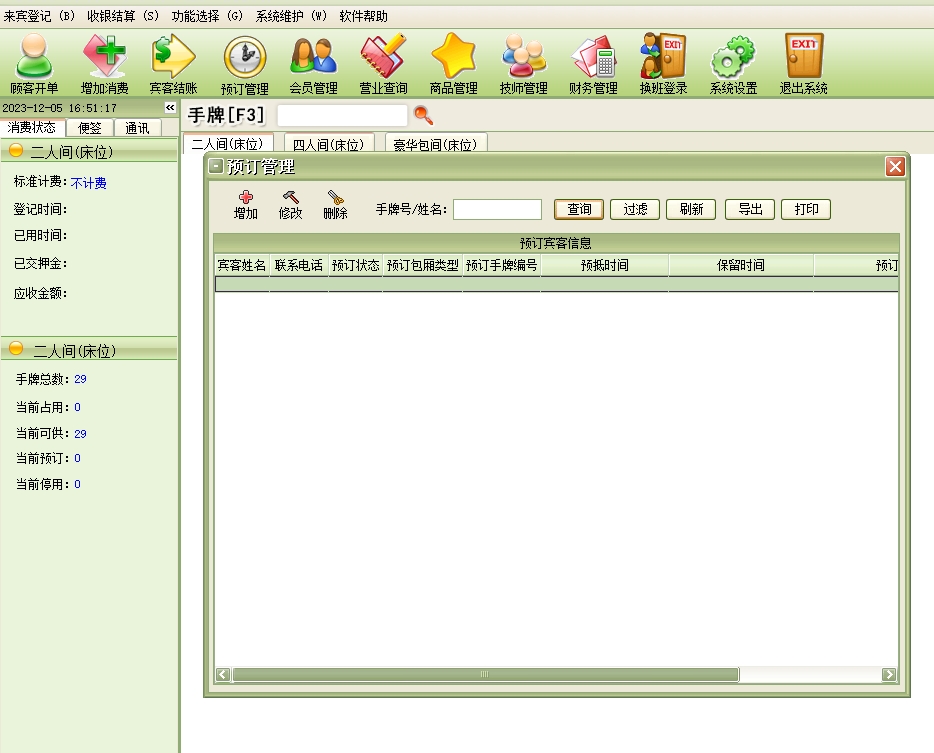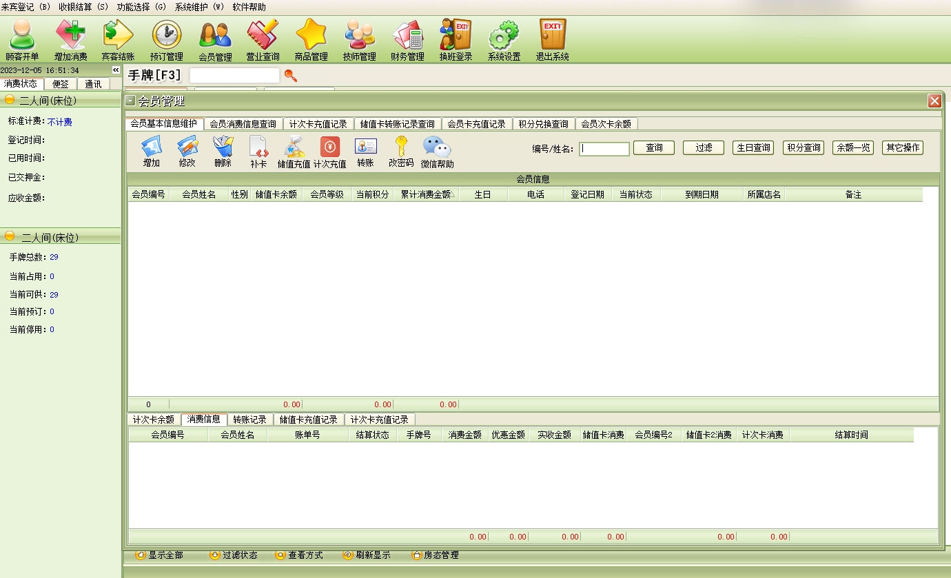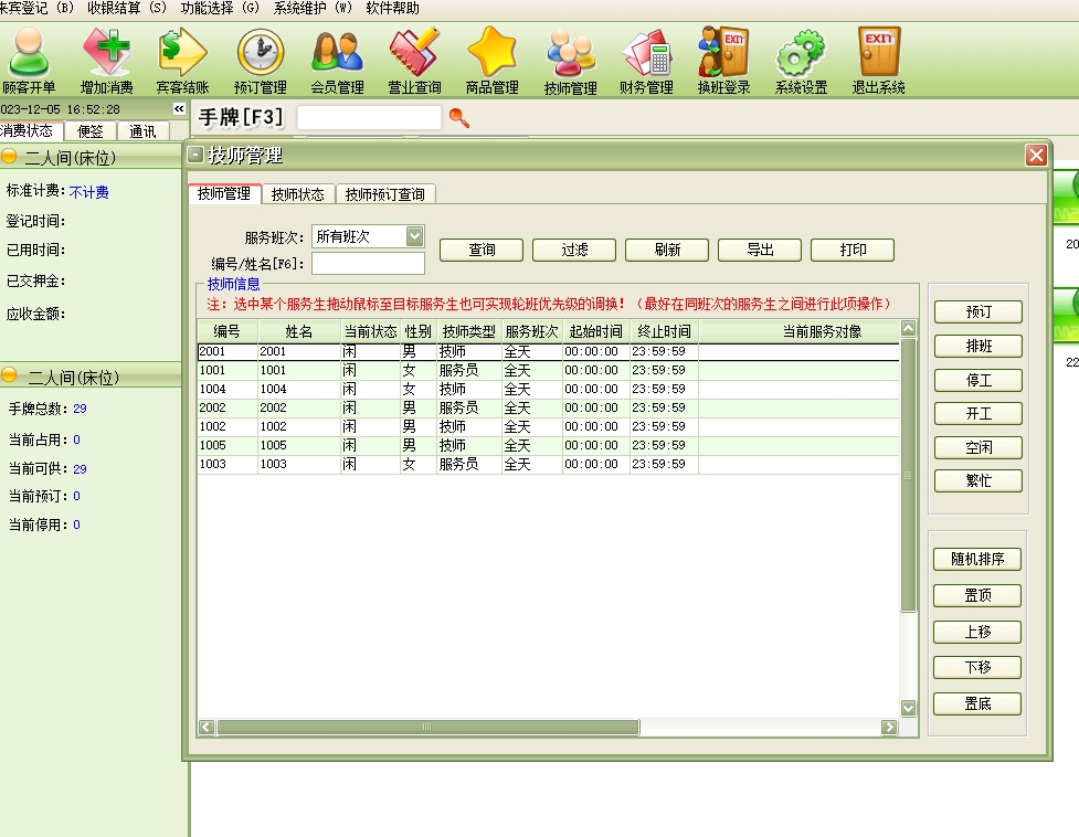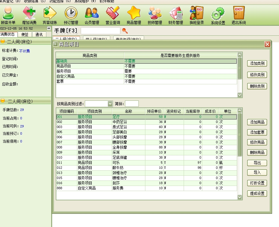 美萍足疗管理系统(软件)的主要功能: