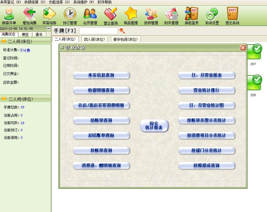 第五:足疗软件具有强大的统计查询功能,每天的收款情况,客流量都可以清楚的统计出来,随时可打印。
