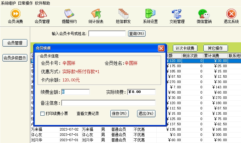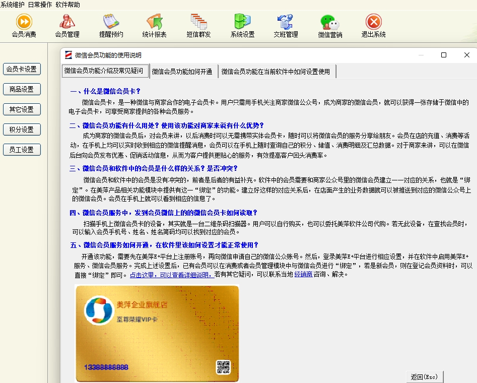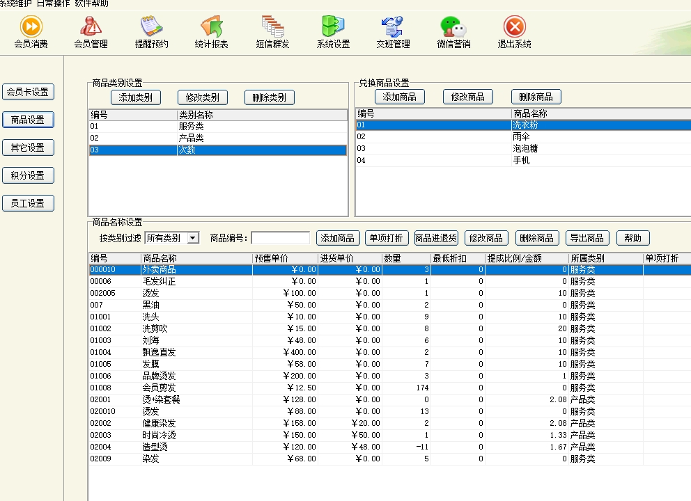 第二:美发(门店)软件支持储值卡、折扣卡、计次卡,会员提醒(包括生日提醒),会员来电提示,短信群发。