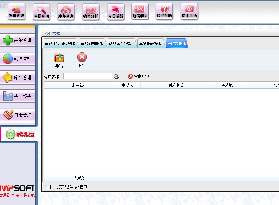美萍汽车配件(汽配)进销存管理系统(软件)的主要功能: