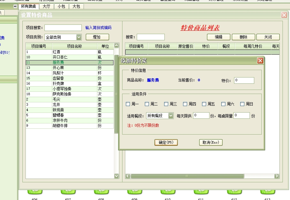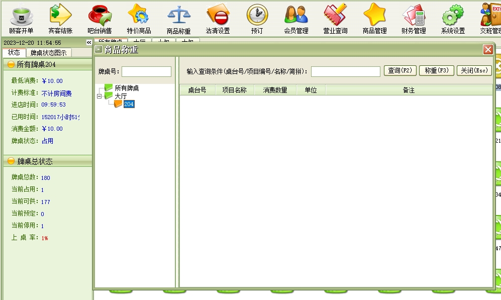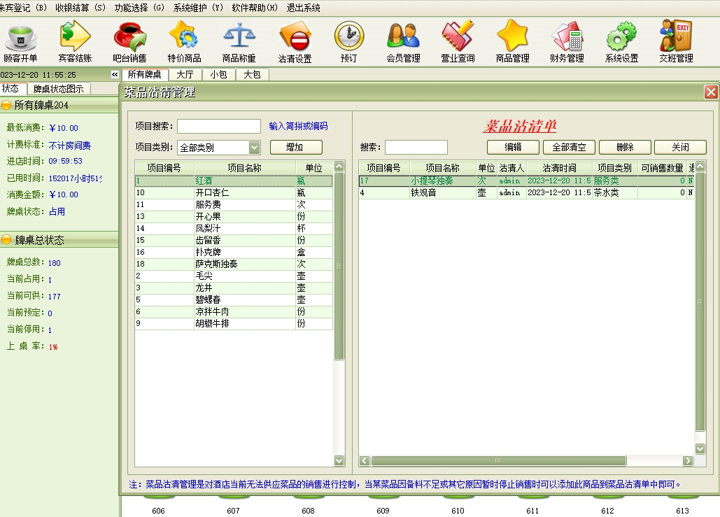 第五:棋牌室软件具有商品项目:是店方提供给宾客的并收取一定费用的项目(例如:服务项目、酒水、香烟等)。此项目在系统设置中设置,在为宾客增加消费时使用。