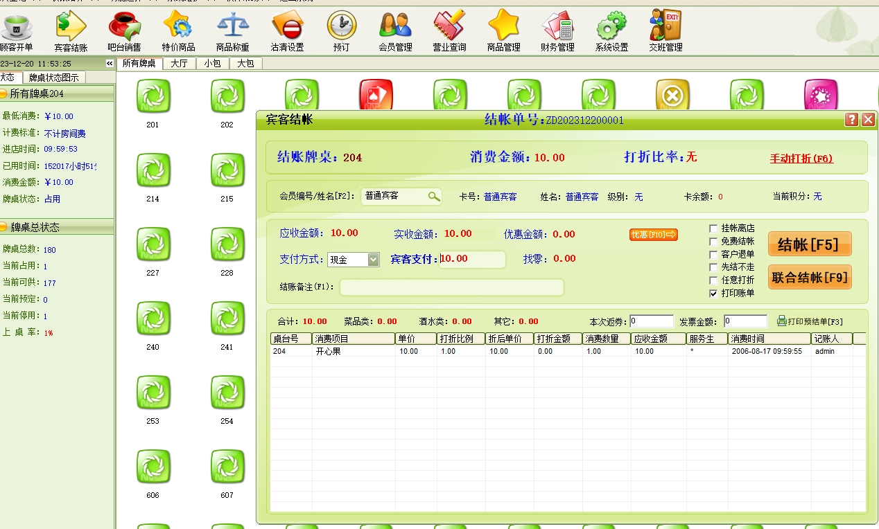 第十三:棋牌室软件支持对帐单进行会员打折、全场打折、任意打折、单项特殊打折设置等多种打折方式。