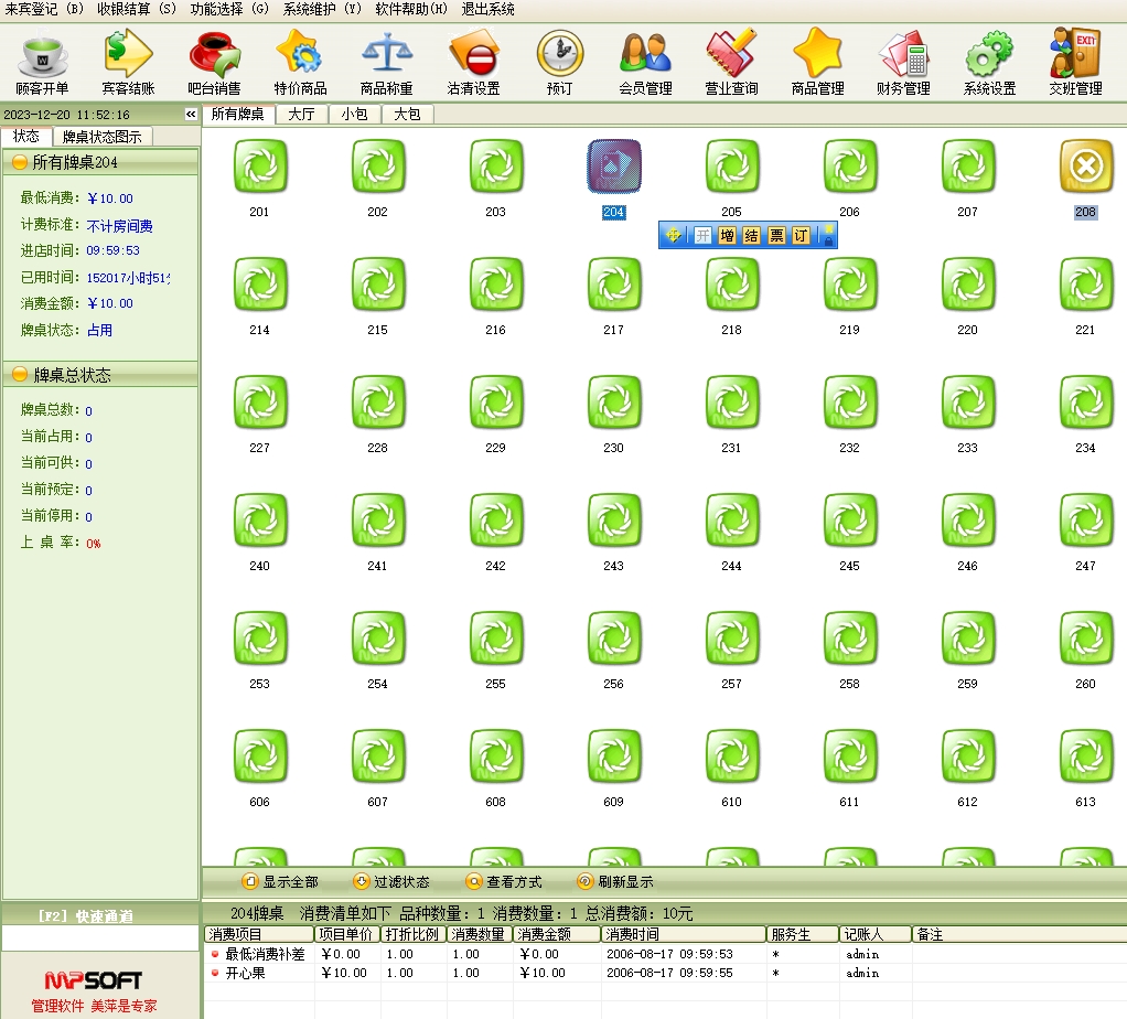 美萍棋牌室管理系统(软件)的主要功能: