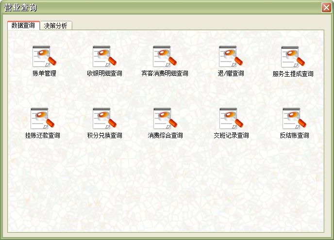 收银结账→宾客结帐:终结客户当前的消费活动,并进行收款及自动还原包厢项目(餐台)的占用状态为可供状态。