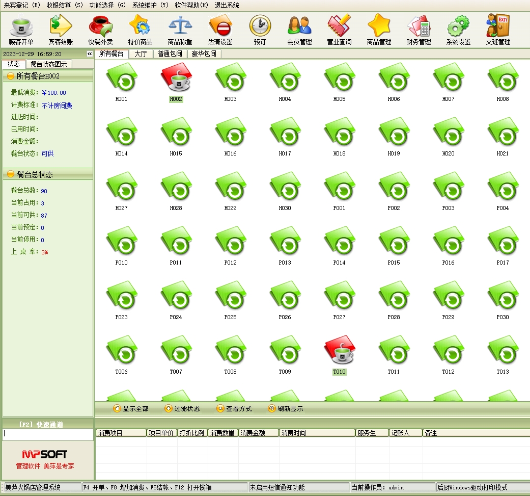 第一:火锅店软件具有台位管理,快速开单,餐台状态管理,快捷工具条管理。