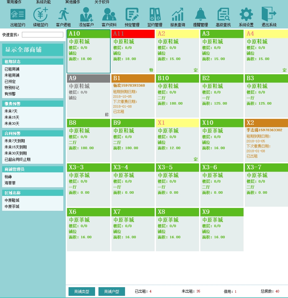 3. 方便查询:通过市场商铺租赁管理软件,可以随时查询商铺的租赁情况,包括租金、押金、租期等信息。