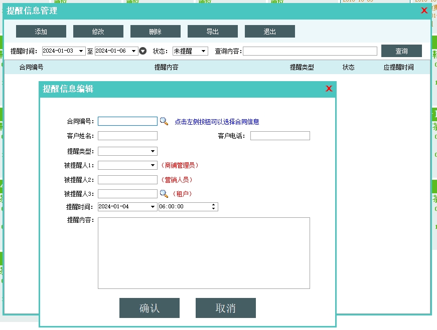 第四:市场商铺租赁软件支持显示预警、缴费和自定义类型的提醒信息,支持自动提醒。