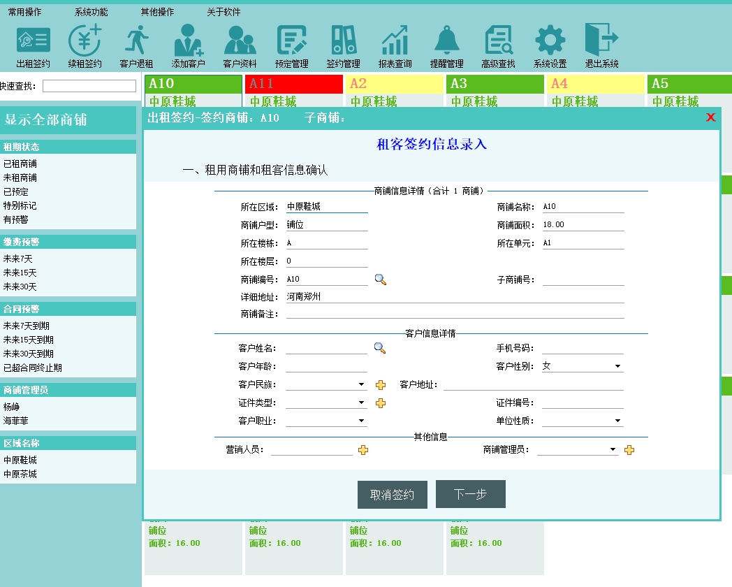 第三:市场商铺租赁软件具有综合管理预定信息,支持分项修改预定信息和预定状态管理。