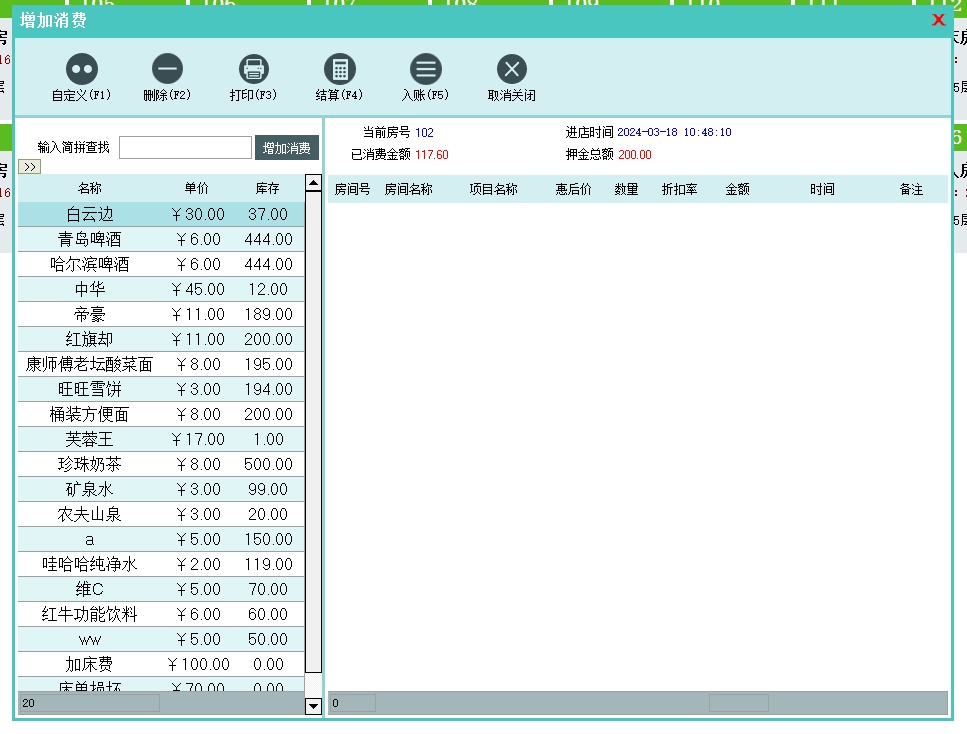 第十一:民宿客栈收银软件实现民宿客栈收银商品外卖的功能。同时提供结账时挂账到客房的功能。