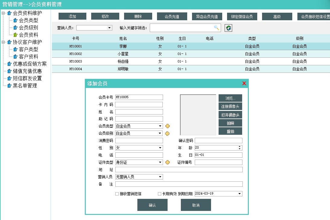 第二:民宿客栈收银软件支持会员管理,会员可分为折扣卡、储值卡、积分卡等,会员卡支持条码卡、磁条卡、ID卡、ic卡、芯片卡等,支持多种刷卡设备:磁卡读写器、ID卡读写器、ic卡读卡器、芯片卡读卡器