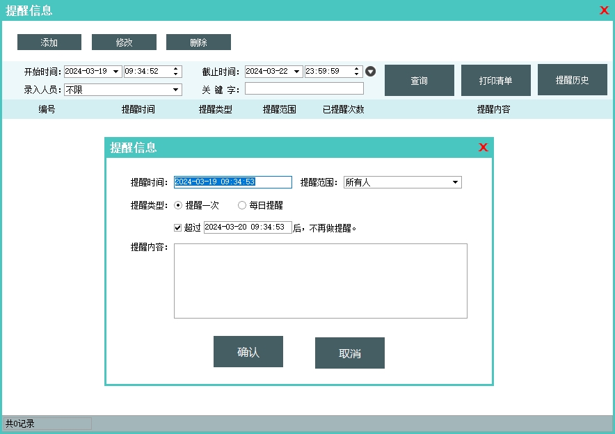 第五:月子会所软件支持护理提醒、生日提醒、事件提醒、欠费提醒、出入登记、自定义服务记录、事件记录管理。