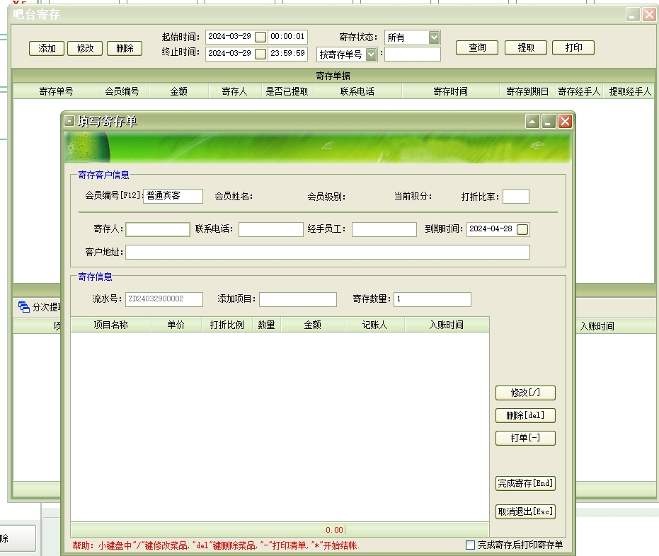 第十:酒吧软件具有点单消费功能:客人进店后直接到前台点菜消费,同时付费买单,客人点的菜品将被打印到相应的打印机(如打印到后厨或打印到不同的吧台)。支持会员打折,会员挂账等操作。