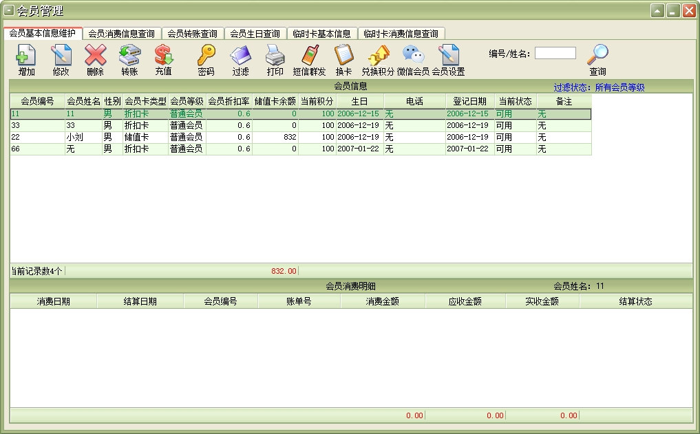 第十三:酒吧软件支持会员的分级管理,支持折扣会员和储值会员,会员卡支持磁卡、IC卡、条码卡、ID卡。