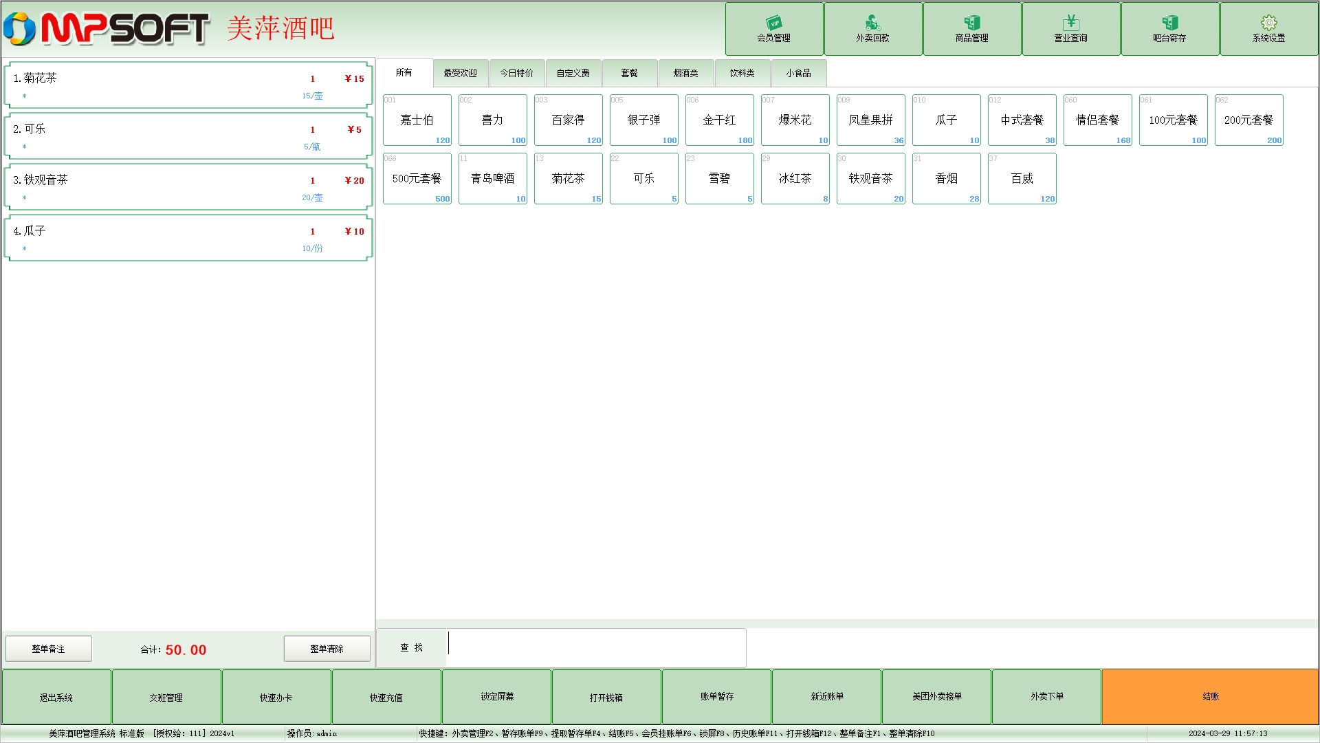 美萍酒吧管理系统,餐饮管理软件,快餐酒吧管理软件,酒吧管理系统,专业的快餐酒吧软件,美萍官方正版软件