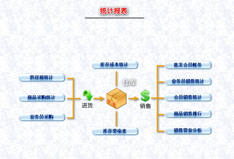 第三:会员销售软件提供库存之间商品调拔,商品的报损溢,强大的库存盘点功能,库存商品报警查询。