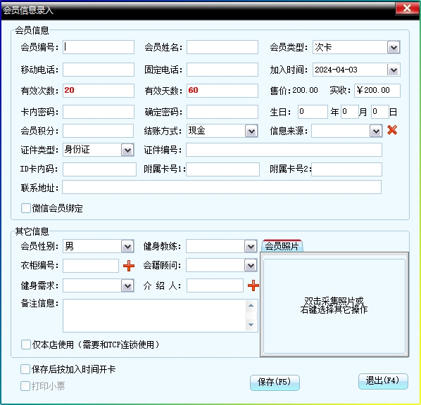 美萍健身房软件支持会员录入指纹来代替会员卡功能
