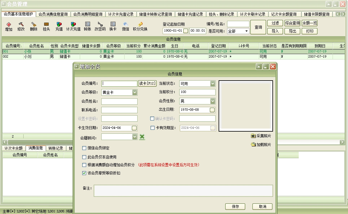 4、会员卡(如果需要实体会员卡,可以单独定制各类会员卡,如磁条卡、ic卡、id卡、m1卡、芯片卡等,软件都兼容)