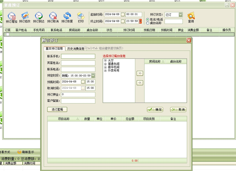 第十四:餐饮软件支持来宾登记→顾客开单:每个客户发生消费前必须进行登记(建立客户帐),给客户安排一个包厢(餐台)等包厢项目,包厢项目必须是在“系统设置”模块中的“包厢项目”中已经设置,系统只能对已设置的包厢项目(餐台)进行登记。
